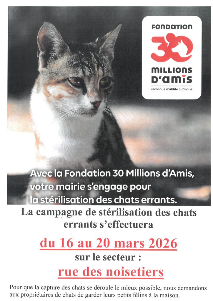du 16 au 20 mars prochain : campagne de stérilisation des chats errants